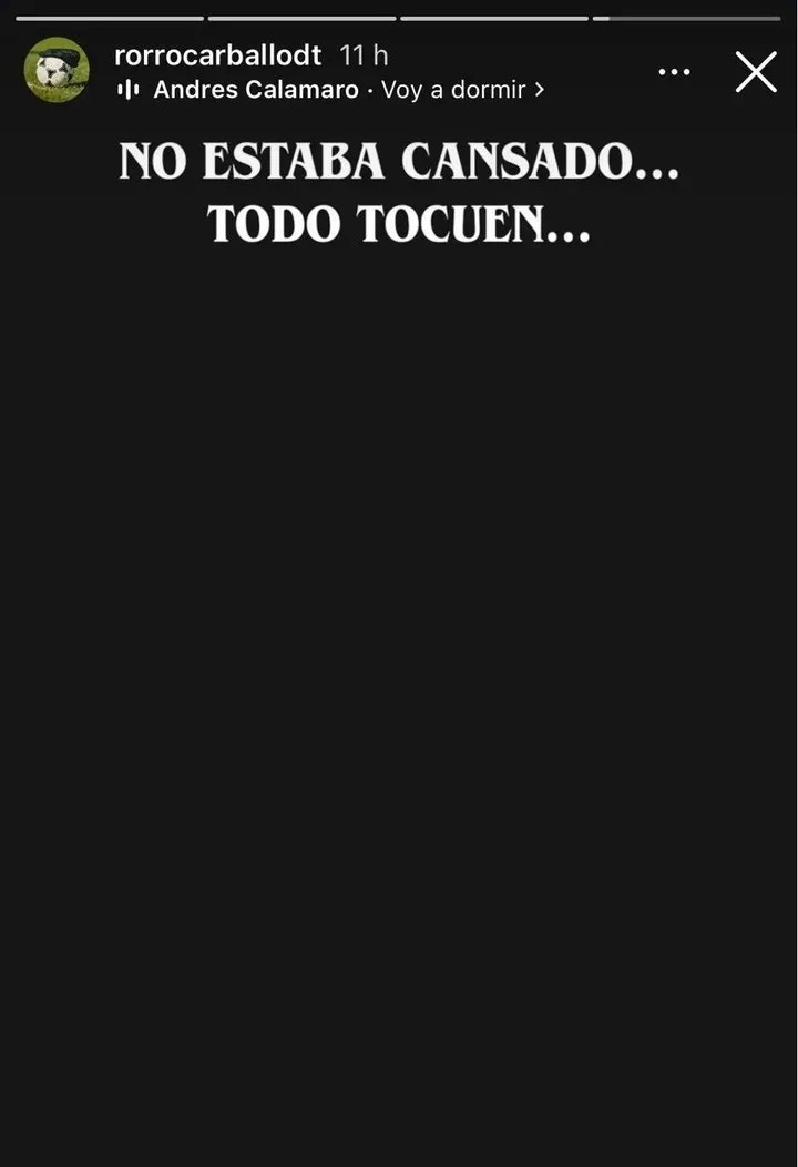 Es que en su cuenta de Instagram Rorro Carballo, persona del entorno de Zeballos, posteó: “No estaba cansado, todo cuento”.